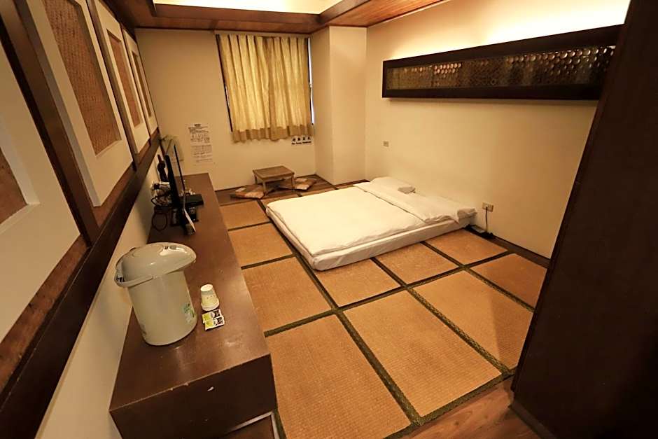 This Japanese-style guestroom is fitted with a juniper wood bathtub and a memory mattress.